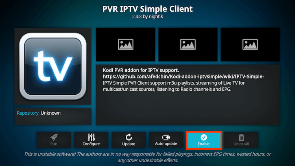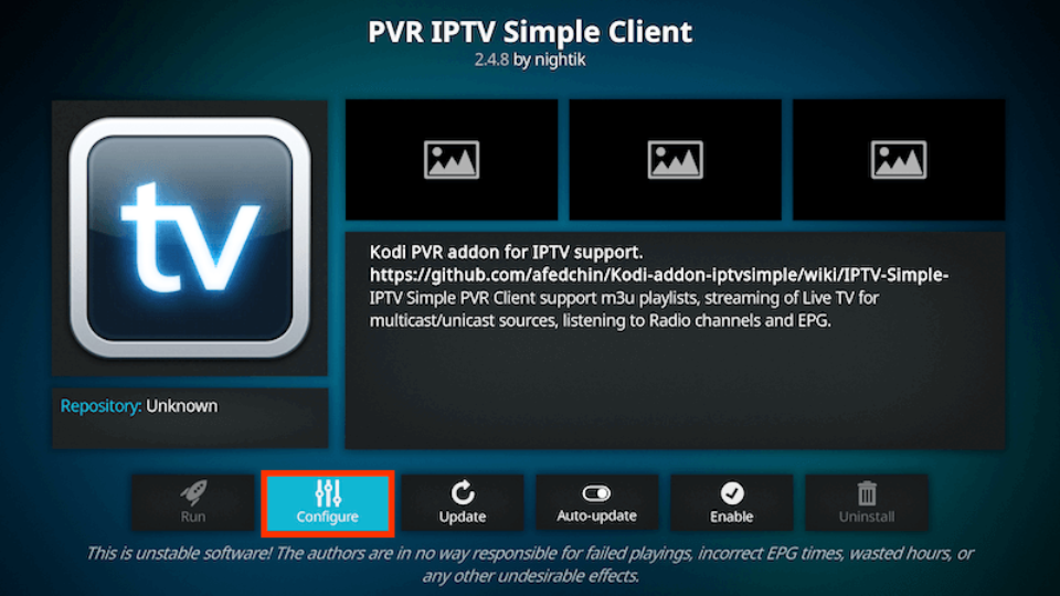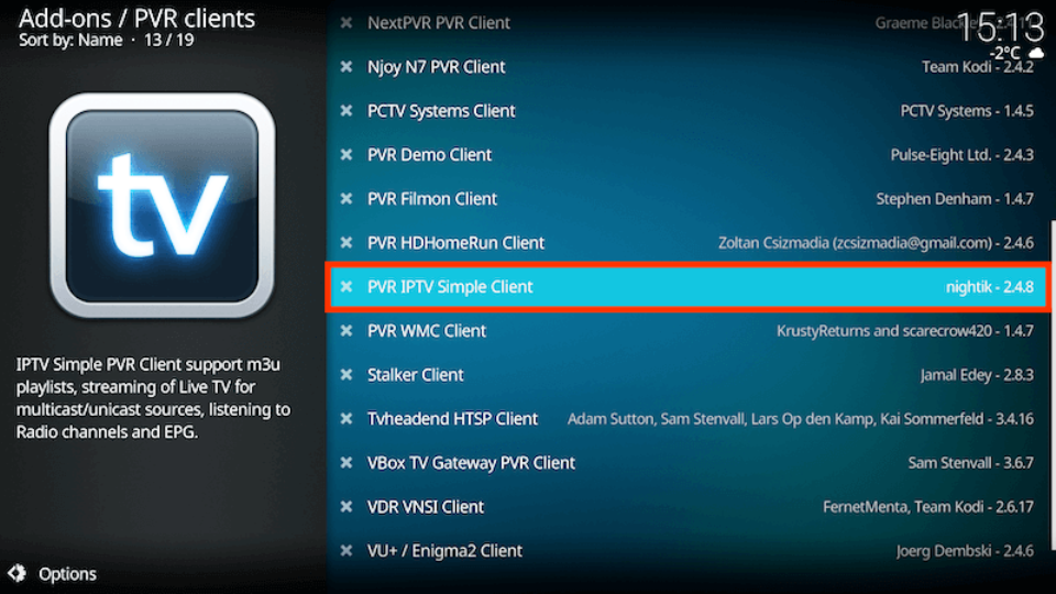 - Select PVR IPTV Simple Client
