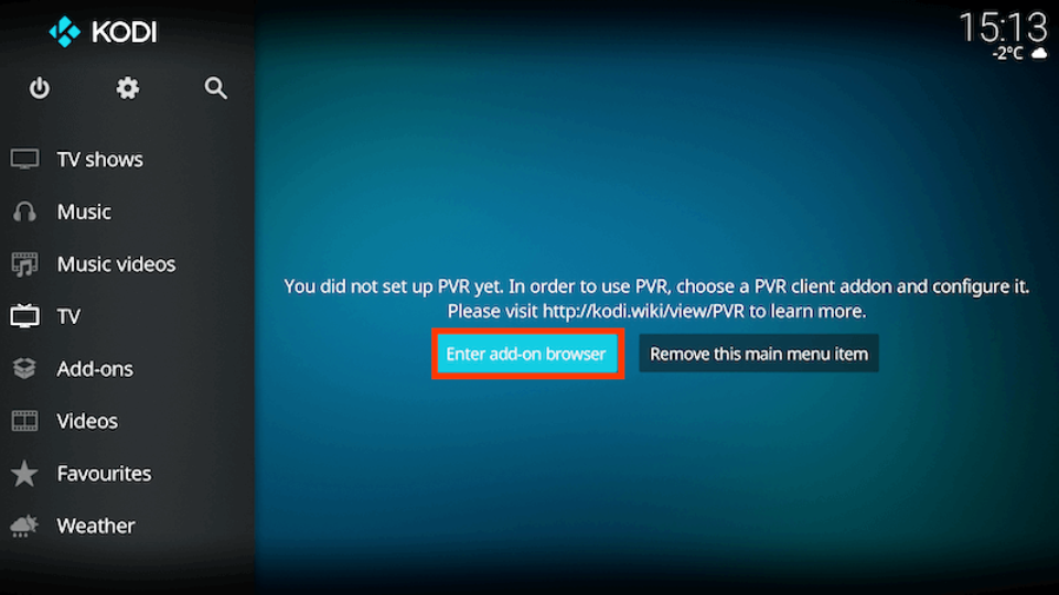 - Scroll down and select PVR IPTV Simple Client